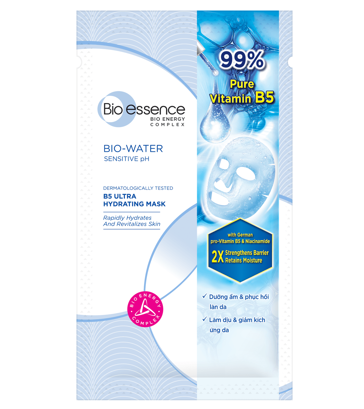 MẶT NẠ CẤP ẨM BIO ESSENCE BIO-WATER B5 ULTRA giúp cấp ẩm tự nhiên, ngăn ngừa tình trạng mất nước khiến da khô căng, bong tróc, đồng thời duy trì độ mềm mại, đàn hồi và săn chắc của làn da.